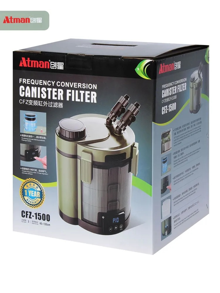 Полный контроль над чистотой вашего аквариума! Внешний фильтр ATMAN CFZ-1500 — это профессиональное решение для безупречной фильтрации в пресноводных и морских аквариумах до 250 литров. Мощный, тихий и энергоэффективный, он позволяет гибко настраивать производительность под ваши задачи.